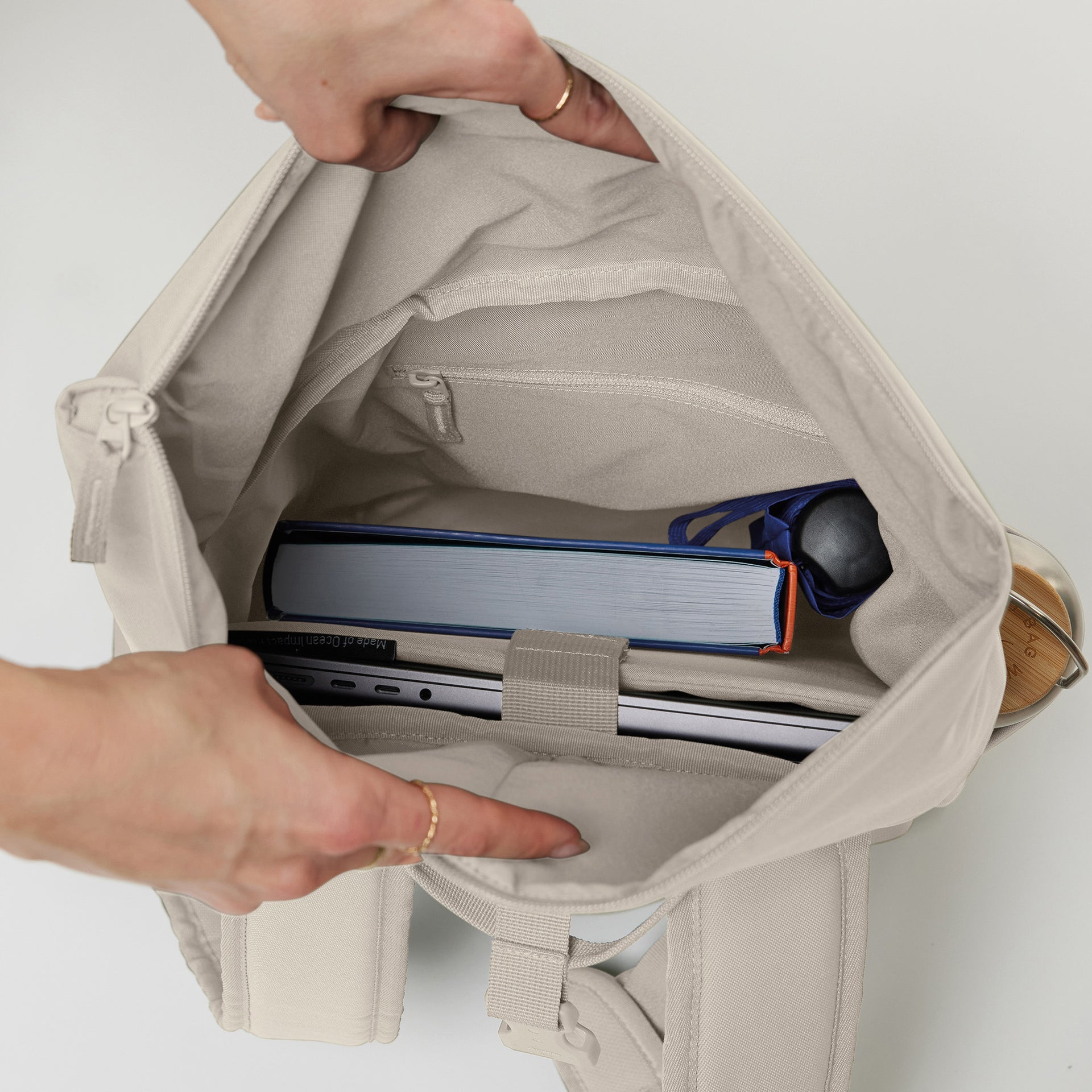 - Flexibler Rolltop-Verschluss mit Reißverschluss
