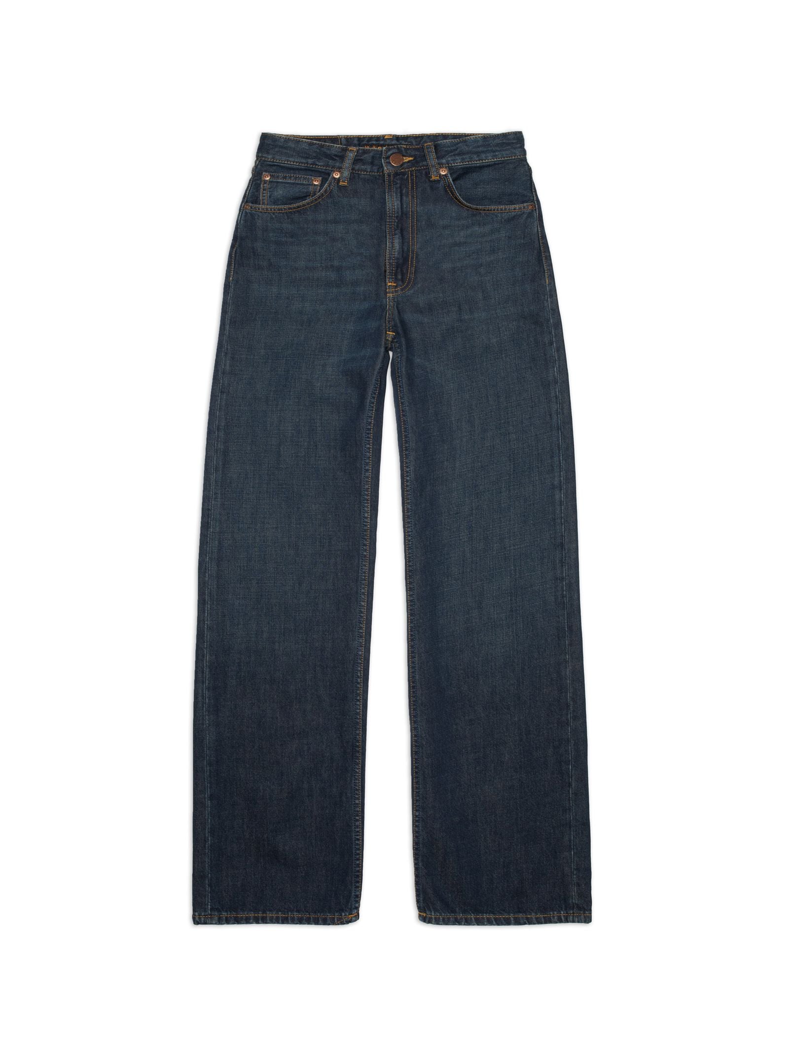Lockere Jeans mit hoher Taille und weitem Bein in einer Warm-Wave Waschung. Hergestellt aus Bio-Baumwolle.